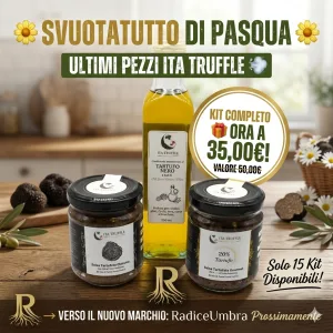 Lavorato con cura artigianale e rispetto per la natura, dalla nostra Tartufaia alla tua tavola, selezioniamo solo i migliori frutti della terra per offrirti profumi e sapori autentici d’Umbria.